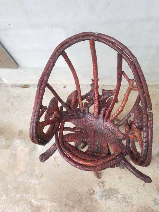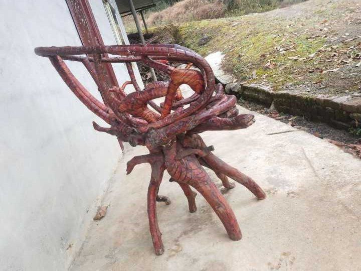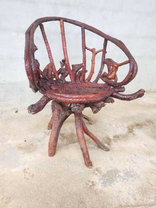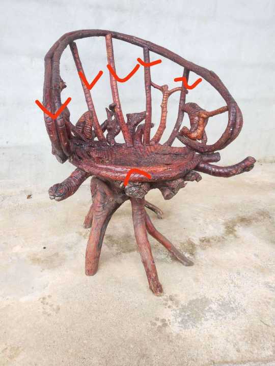 来个懂行的大佬,急处理,“纯原生态根雕艺术品椅子”,此物件为个人物品,就一件,独一无二,红梓刺材质的,年份有差不多7年,打钩处是椅子靠背和椅口处为青藤藤条加工,如有意者欢迎致电:*****3294 ,微信同号,谢谢